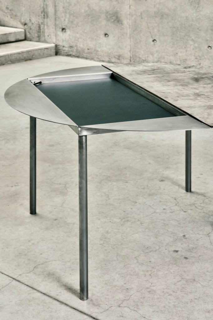 ‘Hoe geeft een meubel een verhaal door?’ Dit is de eerste onderzoeksvraag maar daarom geen aanzet tot innovatie. Het is voor mij eerder belangrijk dat ik authenticiteit creëer en nieuwsgierigheid opwek. Door de keuze van leer als tafelblad voor een eettafel worden gebruikssporen makkelijk vastgehouden op het oppervlak. Zo wordt het tafelblad een door de mens gecreëerd voorwerp dat, ook op zichzelf, kan dienen als kunst in de ruimte.